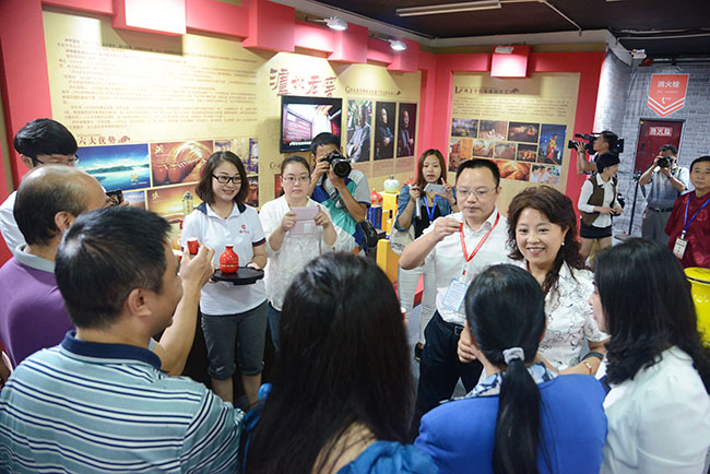 瀘州老窖酒傳統釀制技藝作為國家首批非物質文化遺產項目,與瀘州市的國家級、省級、市級非遺項目一道,組團參加本次國際非遺節(jié),通過文字、圖片、視頻、實物、講解等形式,盡顯“中國酒城,醉美瀘州”的魅力。開幕式當天,四川省文化廳黨組成員、機關黨委書記嚴颯爽,瀘州市人民政府副市長馬宗慧等省市領導一行前來參觀指導,品嘗國窖1573。
