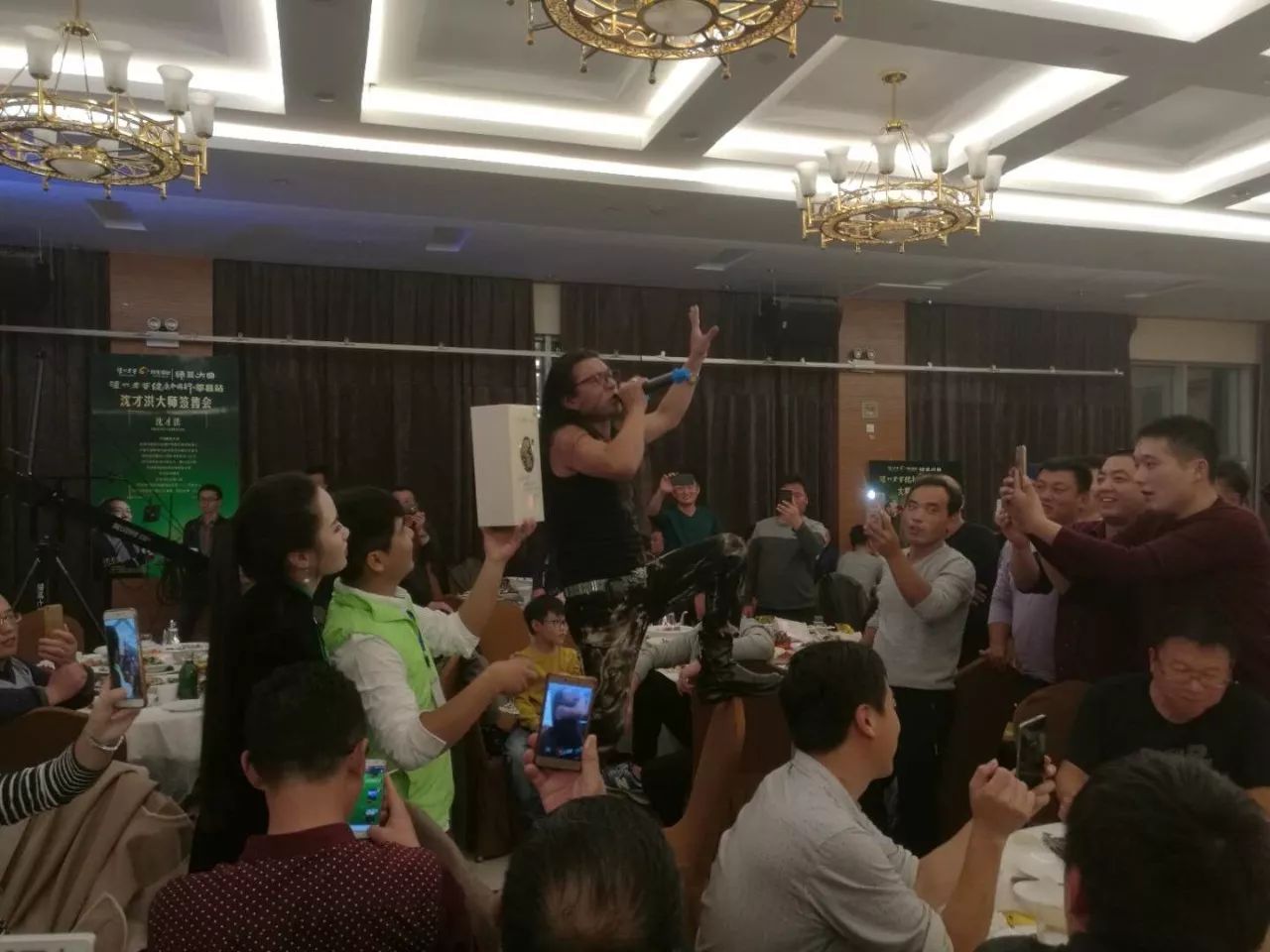 活動進行中,經銷商王總為沈才洪大師獻上了一幅丹青,蒼勁有力的書寫了八個大字:綠豆大曲,蟾宮折桂!這一美好的祝愿來自于山東省書畫協會會員、書法家王曉光先生!他與沈才洪大師有著相同的見解:自古藝術與酒文化不可分割!甚至可以說,大多數流傳千古的佳作皆為藝術家在經美酒的陶醉后創作而成!而美酒也促成了一樁樁美談! 沈才洪大師獲贈丹青 品鑒師邀請大家共同體驗健康養生白酒——綠豆大曲的品鑒之道,用瀘州老窖獨創的經典五步品酒法與嘉賓們進行了深度的交流,也為嘉賓們表演了瀘州老窖傳統調酒技藝,使嘉賓們從聽、聞、觀、感、悟全方面的了解了綠豆大曲的特點:不嗆口、不刺喉、不灼心,好喝不上頭,清熱醒酒快! 品鑒健康養生白酒——綠豆大曲 綠豆大曲的老朋友“野狼”再現舞臺,狼哥依然是激情四射的搖滾范兒,一曲畢后,他走到了人群中間,所到之處皆是歡呼聲不斷!正所謂掌聲不斷酒不斷,在狼哥長達十分鐘的表演內,他與觀眾們豪飲六杯綠豆大曲,并稱贊綠豆大曲喝了果真不上頭,越喝越有勁兒! “野狼”獻唱 活動在一片歡聲笑語中漸漸拉上了帷幕,但是綠豆大曲與莘縣人民的故事才剛剛開始,我們有理由相信,在“綠衫軍”團隊不懈努力下,在經銷商團隊不懈堅持下,在莘縣綠豆大曲新老朋友的不懈支持下,綠豆大曲將如開場的鼓舞一樣,一步步走向盛世!